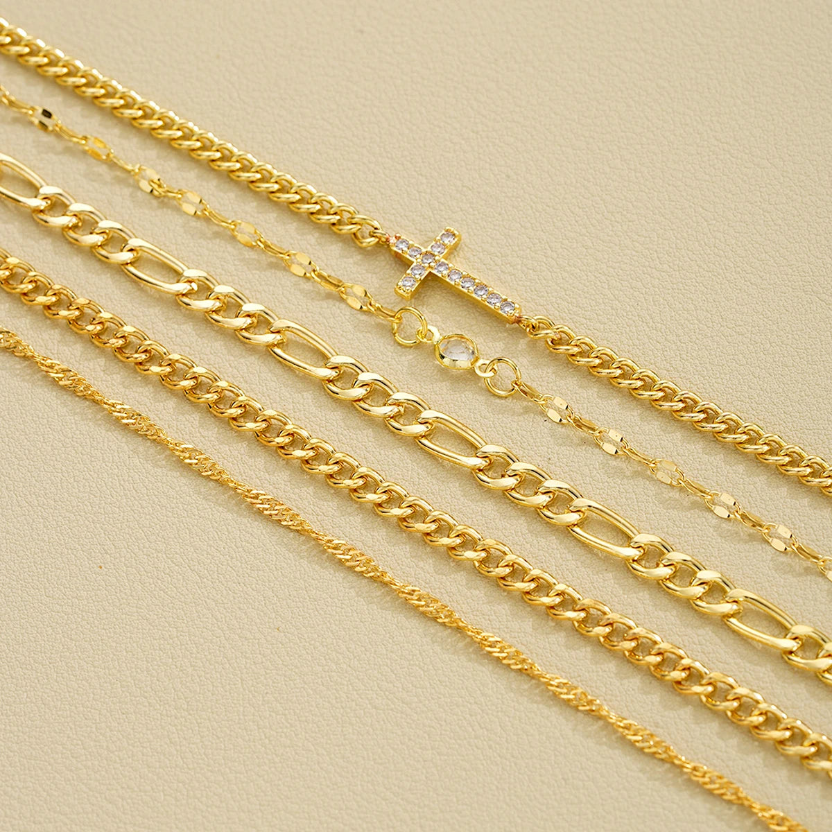 Zircon Cross Charm Bracelet Set Multilayer Fashion Jewelry Women