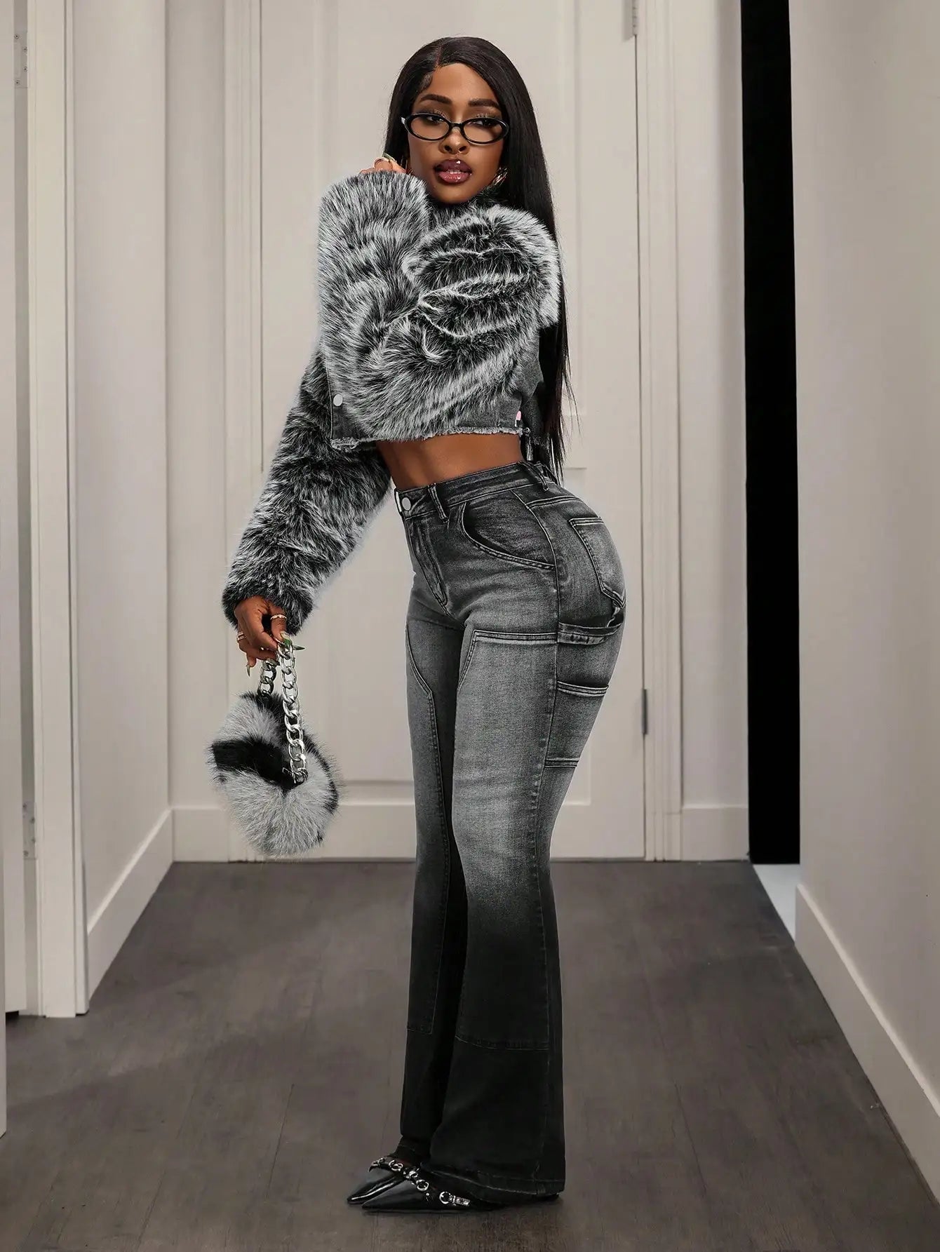 Embrace bold streetwear warmth with this cropped faux fur collar denim jacket that instantly levels up chilly-day looks.